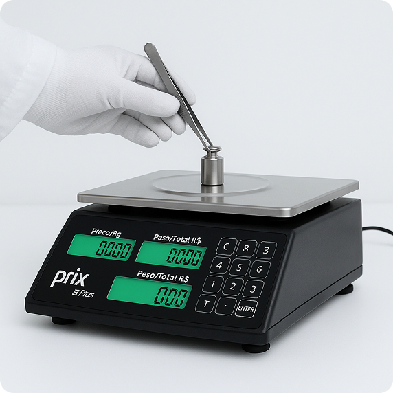 Calibração com pesos padrões rastreados pelo Inmetro e IPEM e conformidade com a legislação.